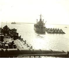 On D-Day we had a ringside seat and had no difficulties in anchoring by the stern, launching LVT’s and then beaching. Our only disappointment was that we did not control the boat waves. Control was kept with CLSTDIV 92 in Coconino County.